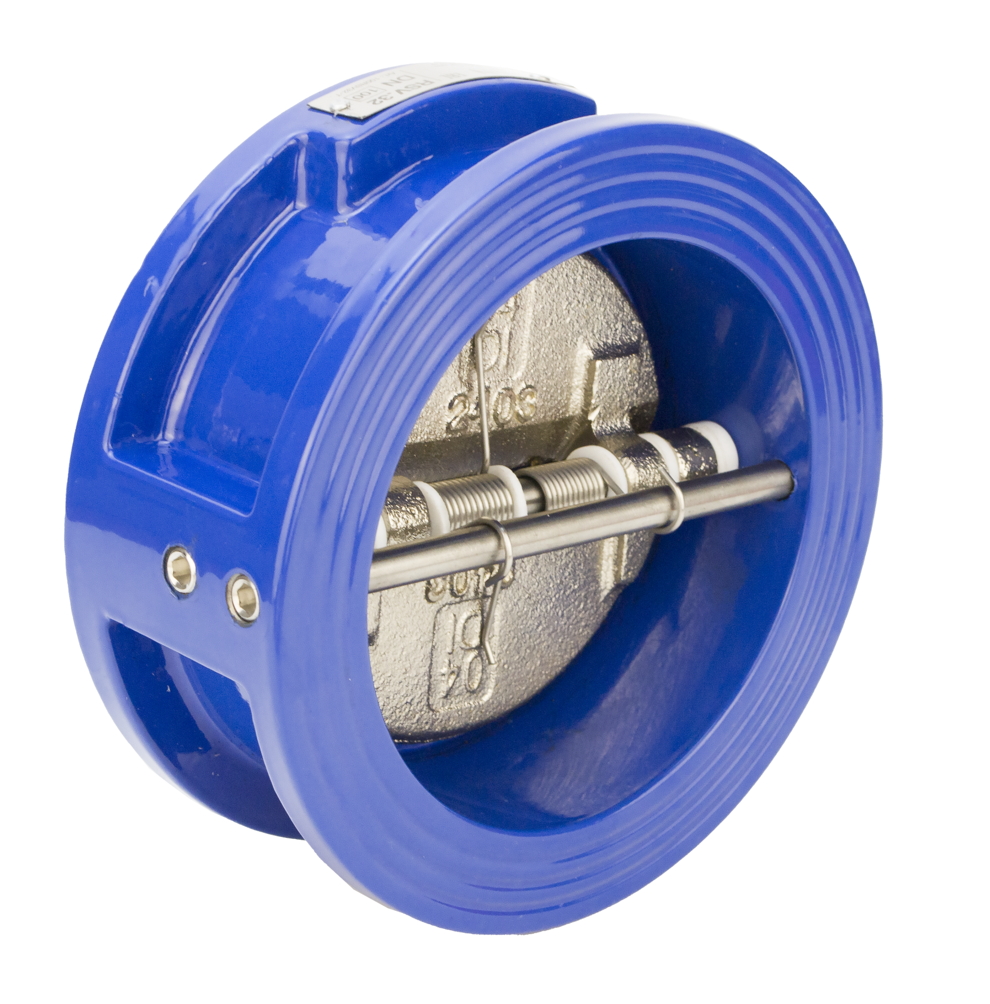 Двухстворчатый клапан состоит из корпуса, пластин, пружины, штока и уплотнения. Корпус клапана изготавливается из серого чугуна, запорные пластины – из высокопрочного чугуна, покрытого никелем, шток клапана и пружина – из нержавеющей стали, седловое уплотнение из EPDM.