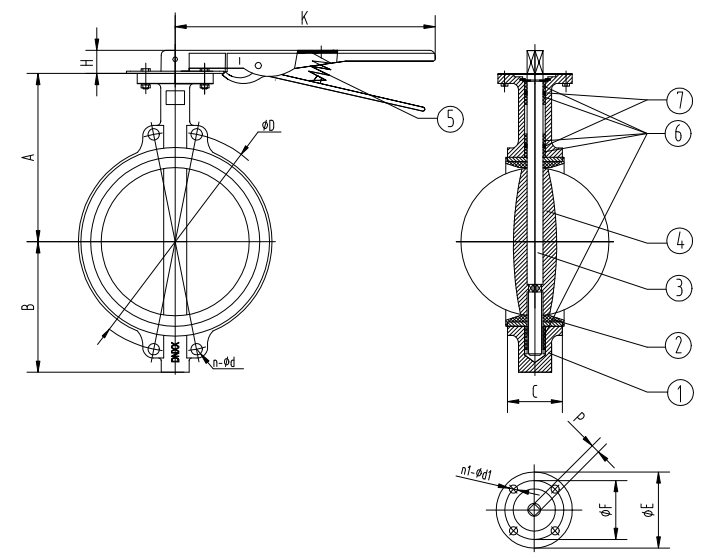 | ISO 5211 | A | B | C | H | K | P | D | n-d | Е | F | n1-d1 | |||