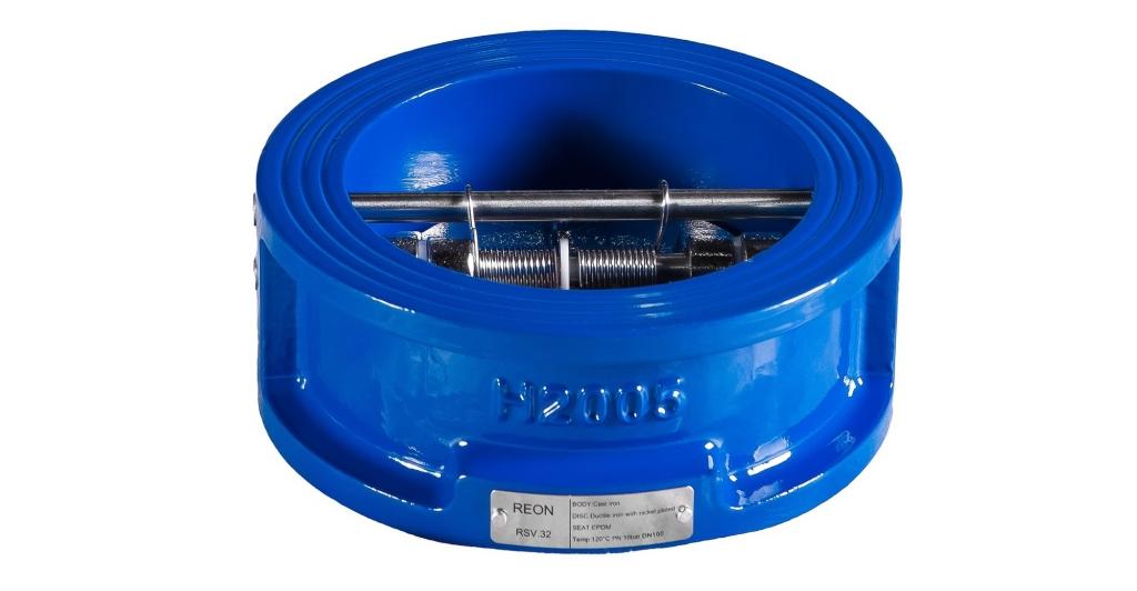 Дисковый обратный клапан межфланцевый. Запорным элементов дискового обратного клапан служит плоский диск, который связан с подпружиненным штоком. В рабочем положении он отжимается, обеспечивая свободный проток. При понижении давления под действием пружины прижимается к седлу, перекрывая проточное отверстие.