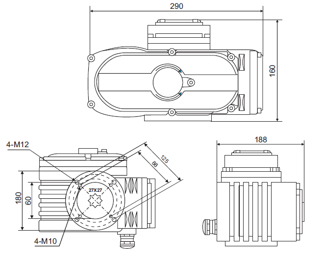 Электропривод обладает защитой от перегрузки, защитой от перегрева и останавливается автоматически после достижения конечных положений.